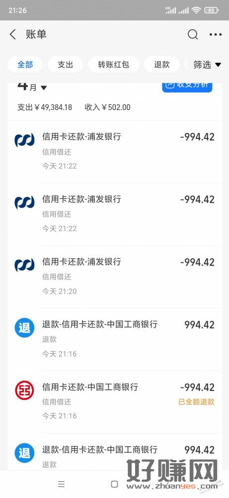 注意:建议不要还建行,溢缴款当天出不来!!!推荐中行和工行,都是支付宝还款限制50笔上限