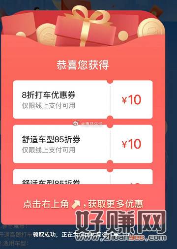 【高德领取10~20元全国打车券】新一期!活动1领不等额无门槛折扣券->活动2领2张5元无门槛立减券->有效期7天->近期有出行的领一下,简简单单省瓶饮料钱!