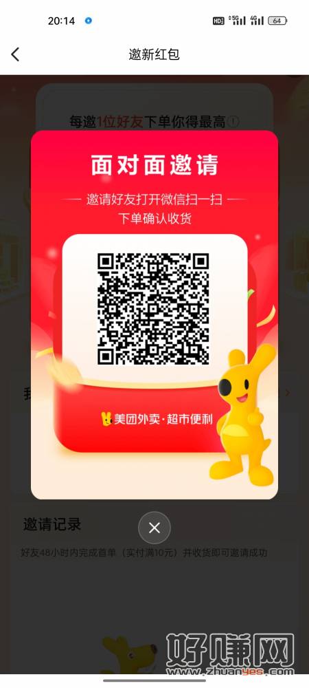 美团超市拉一人5,付款金额大于10+不限新老,配合下面大哥发