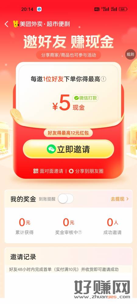 美团超市拉一人5,付款金额大于10+不限新老,配合下面大哥发的今天下单明天抽免单!运气好直接白嫖还能拿现金!