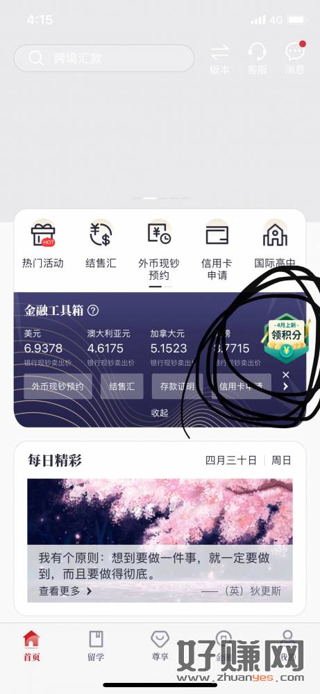 中银跨境app首页去做积分任务,可以撸会员,等积分到了可以玖