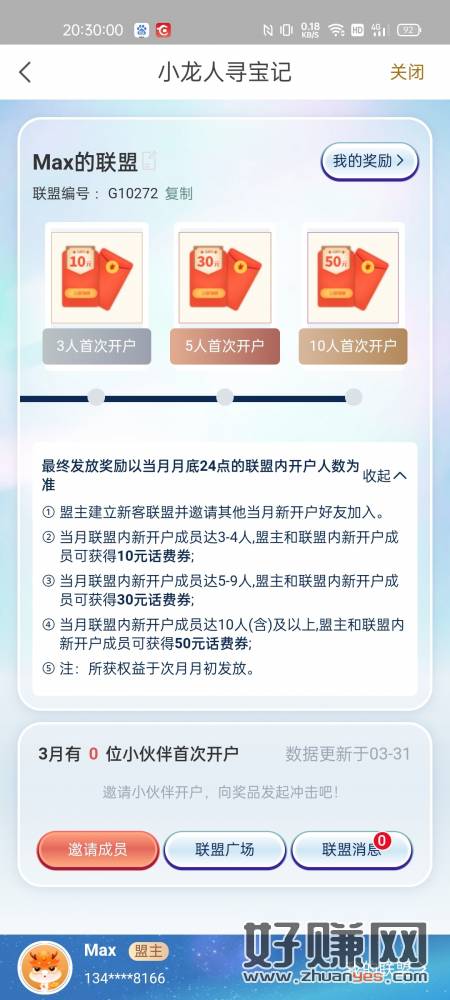 华夏没开户的加联盟满10,人人50。入口生活,能量驿站,新客有礼,第二个,加联盟。可以自己寻找联盟号,也可以看图片搜