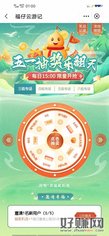 中国银行APP 福仔云游记 天天抽奖 15:00-17:00