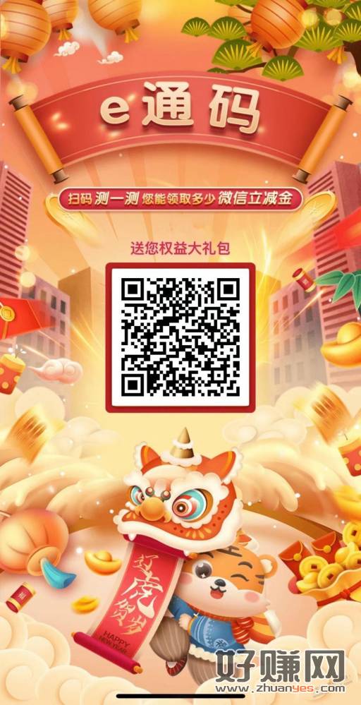 微信扫码~测一测~登录手机银行~点跳过~即可最少得三元立减金