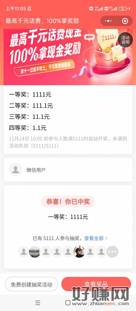 去年我反复的发帖子没几个人参加,结果我中了1111元,这次总该有人信了吧?