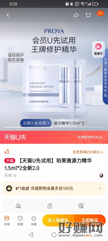 【天猫U先试用】珀莱雅源力精华1.5ml*2全新2.0