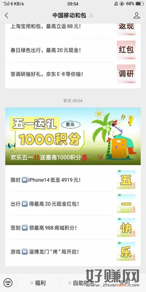 中国移动和包公众号,五一送礼推文