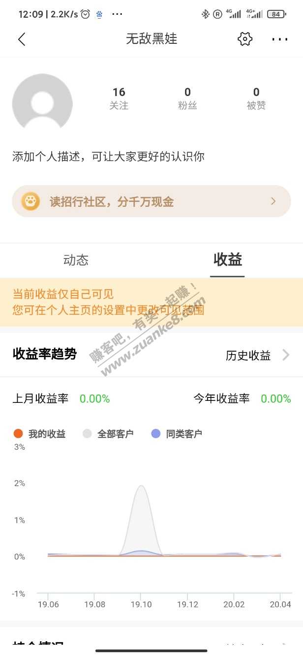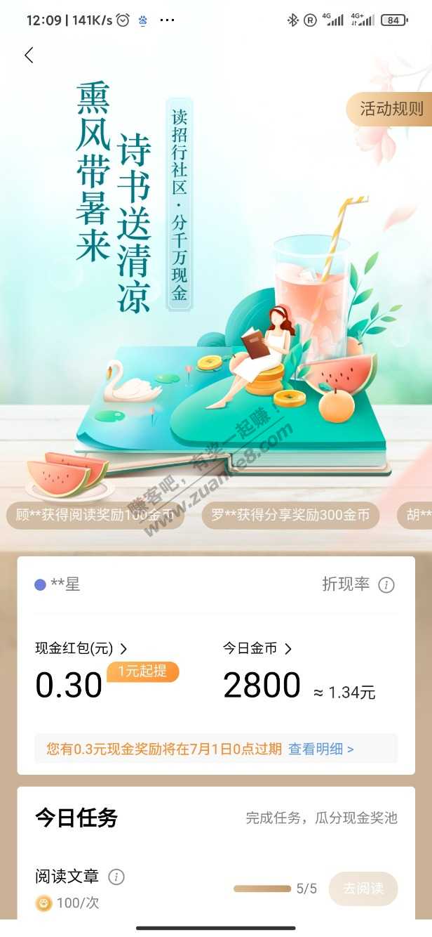 招商App~社区~左上角头像~进去点分千万现金,满一元可提现