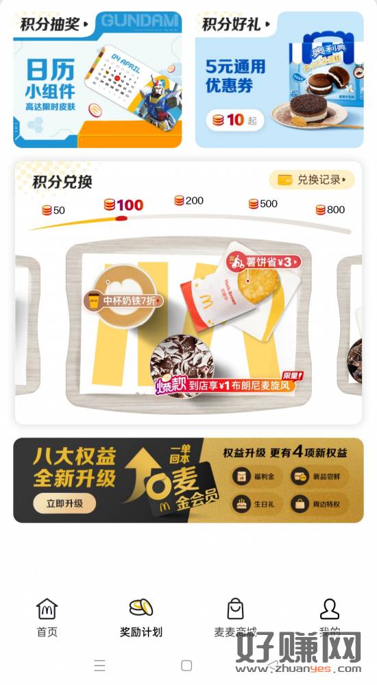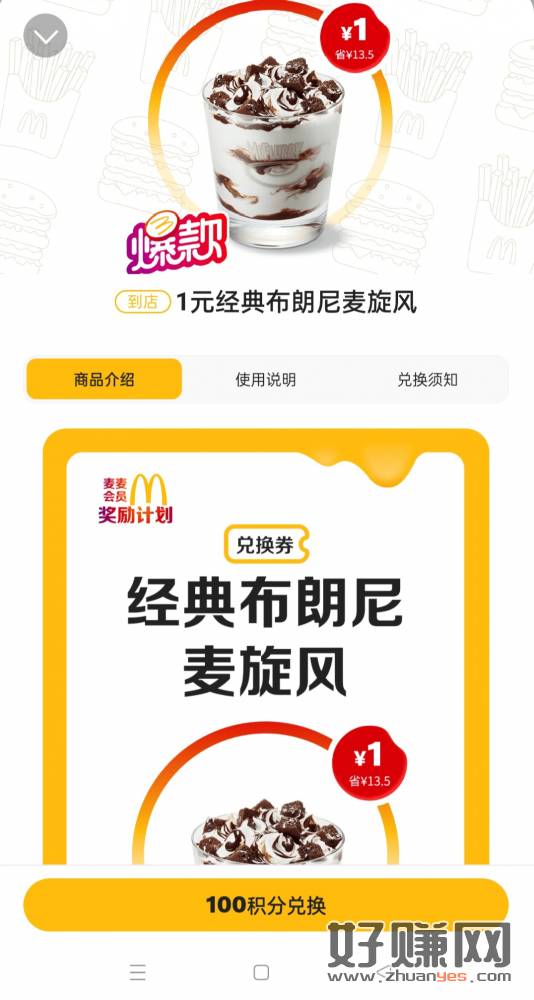 麦当劳 奖励计划 1元麦旋风 有积分的去,闲鱼可以10-11块之间出掉