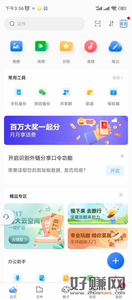 移动用户下载,中国移动动盘,点下方横幅抽话费,必中