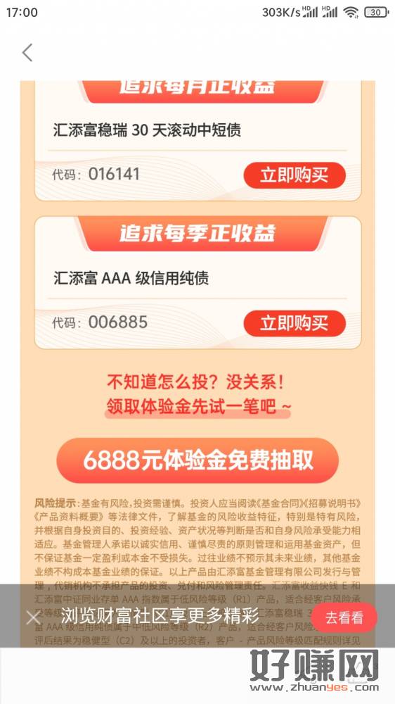 工行领汇添富体验金