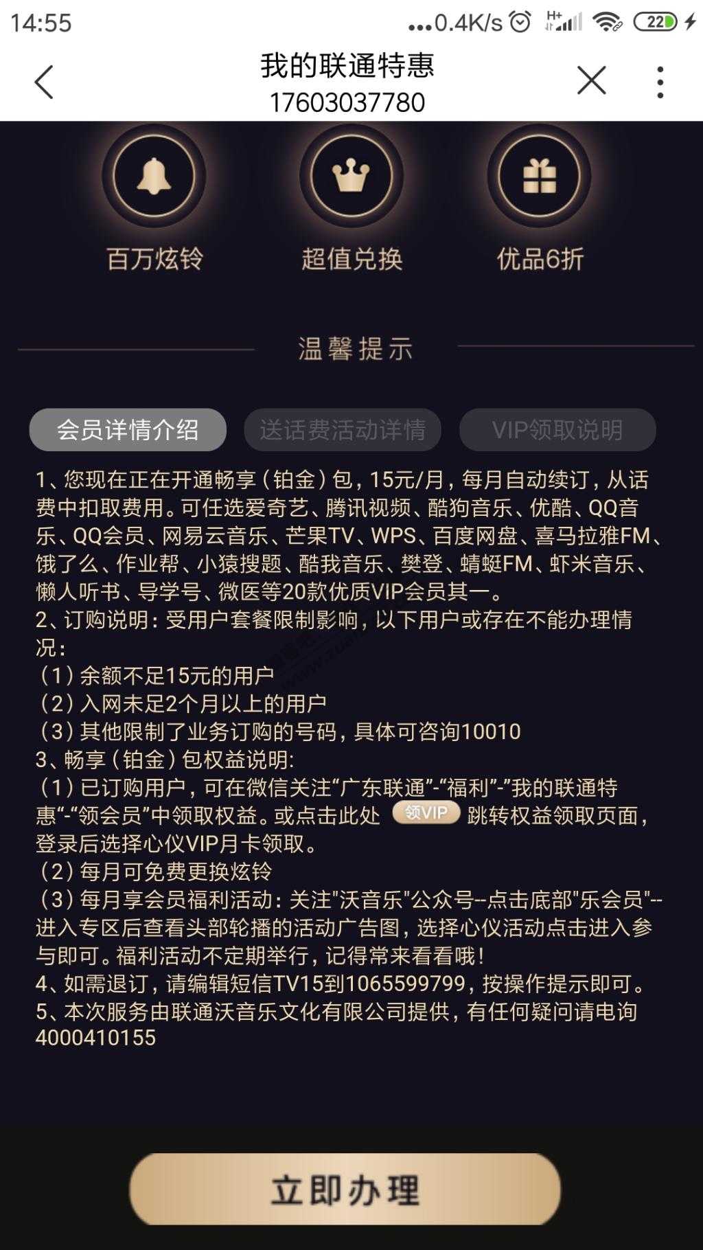 办理这个会员每月费用从话费中扣除。扫码直达活动,需要下载联通app,联通手机号可办,其他手机号未知。