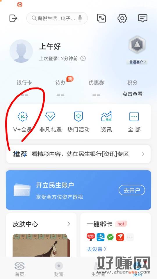民生V+会员,5立减金去领