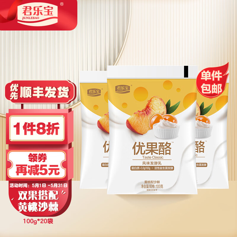 君乐宝 优果酪 黄桃沙棘低温酸牛奶 100g*20袋