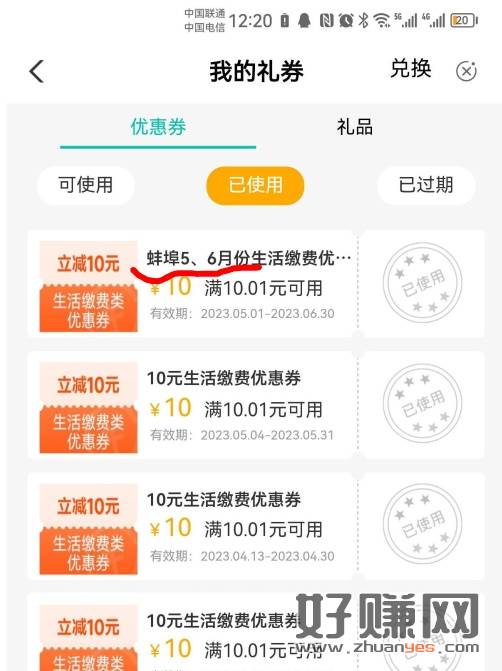老农飞安徽,工资单给的10券,缴蚌埠地区电费,有10券,没出
