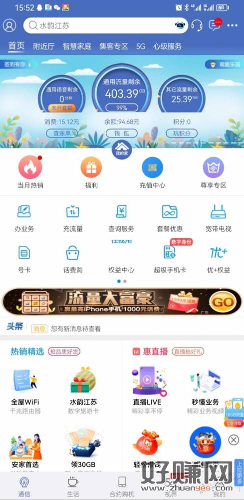 每月430g流量,100分钟通话,一条200m宽带,39一个月