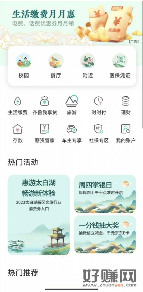 飞了山东工资单的,去城市专区切济南,进横幅去抽奖,有概率中10缴费券