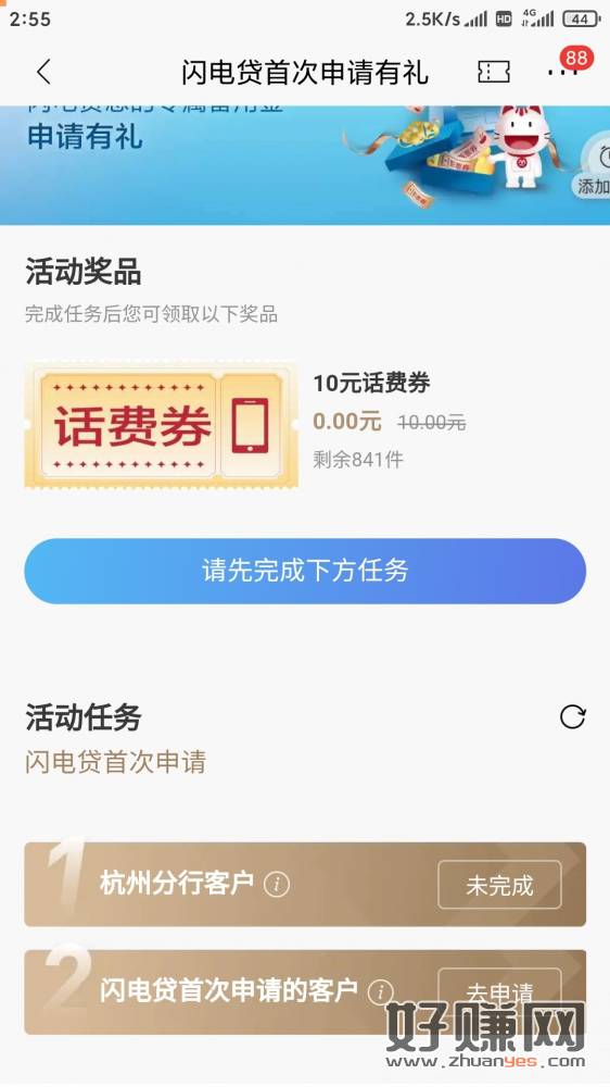 招招10话费,杭州客户首次申请闪电贷