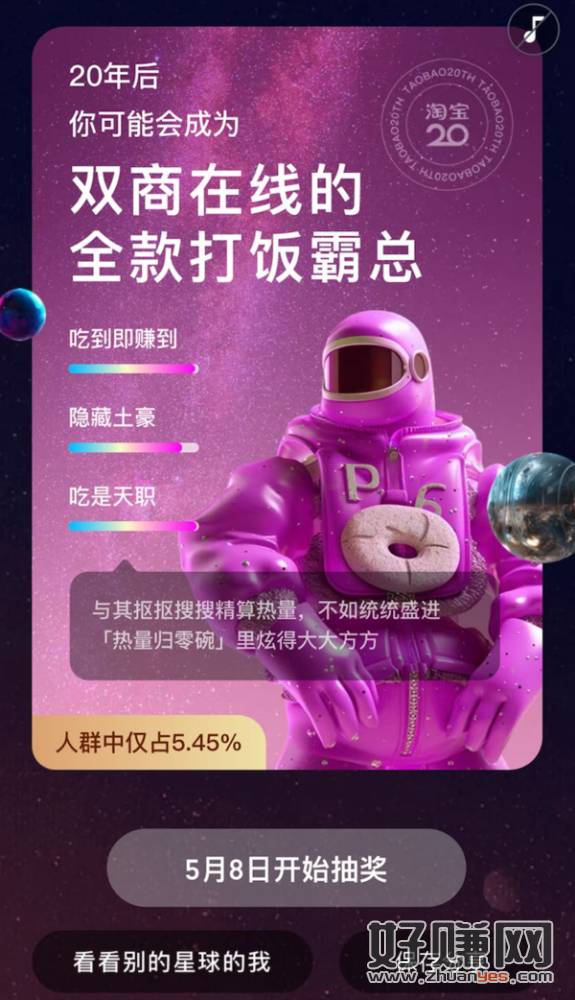 活动内容:参与本活动即可获得一次抽奖资格,分享活动页面可再获得一次抽奖资格。参与抽奖有机会赢取淘宝时光机活动限定奖品,包括20年88VIP会飞、20年淘宝退货运费、20年芒果TV会员、虚拟奖品领取资格及特定商品「0.01/0.1元优惠购资格」