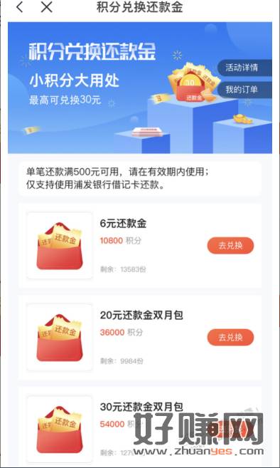 积分换还款金;路径浦大喜奔app—我的—积分—最底下进去,还款金还行,要浦发卡还款,满500才行