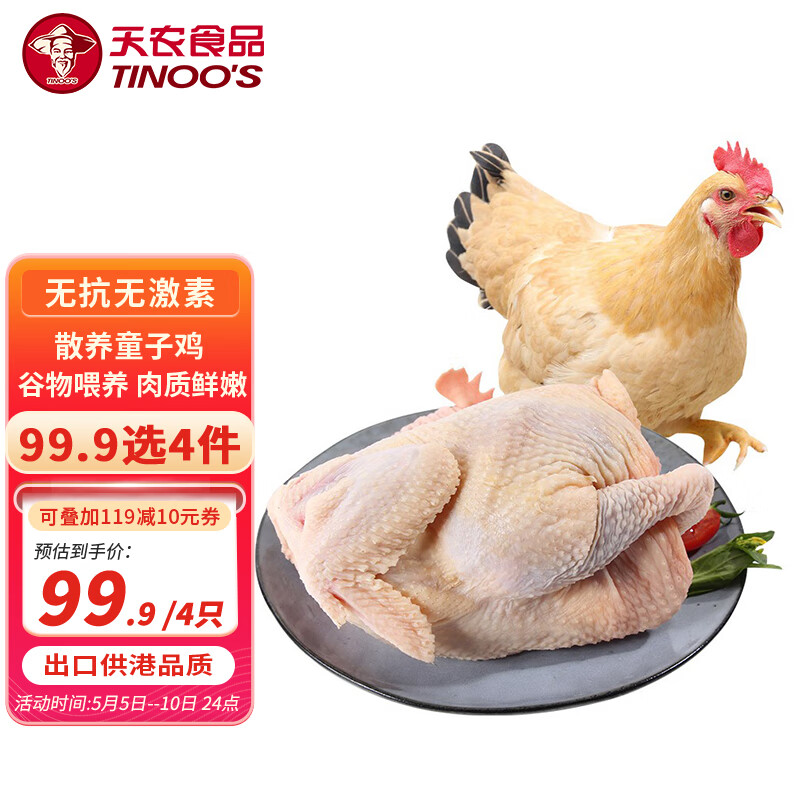 天农 生鲜食材清远童子鸡600g 散养走地鸡