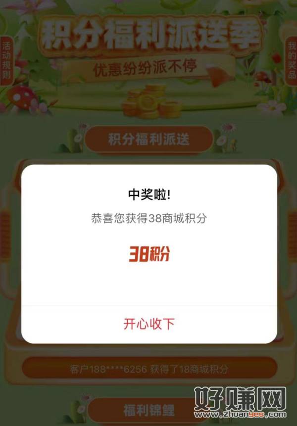 和包APP-商城-积分福利派送季,可1积分抽奖,活动期间内每月限抽一次