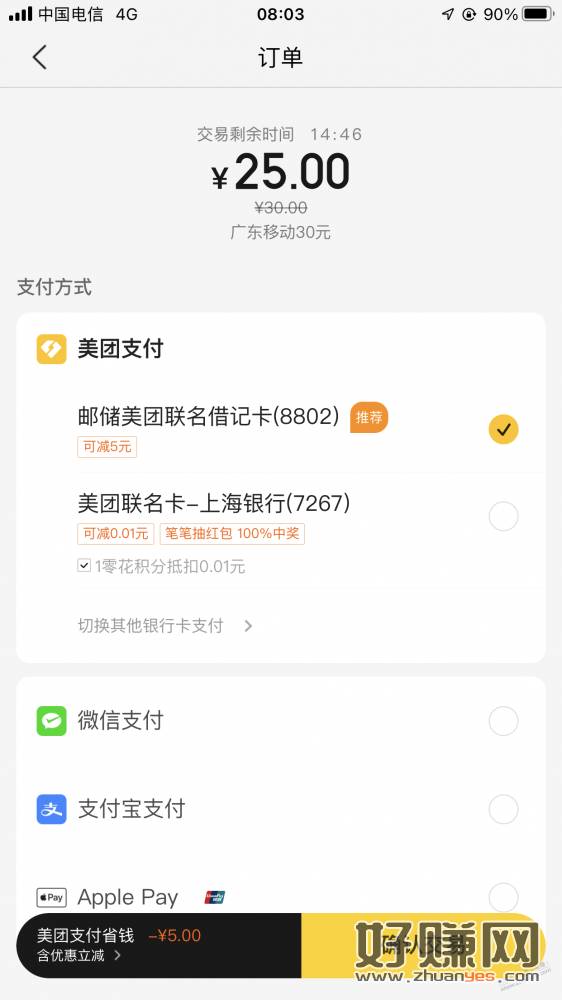 美团充话费30-5,移动联通电信都出,限1次,邮储储蓄卡