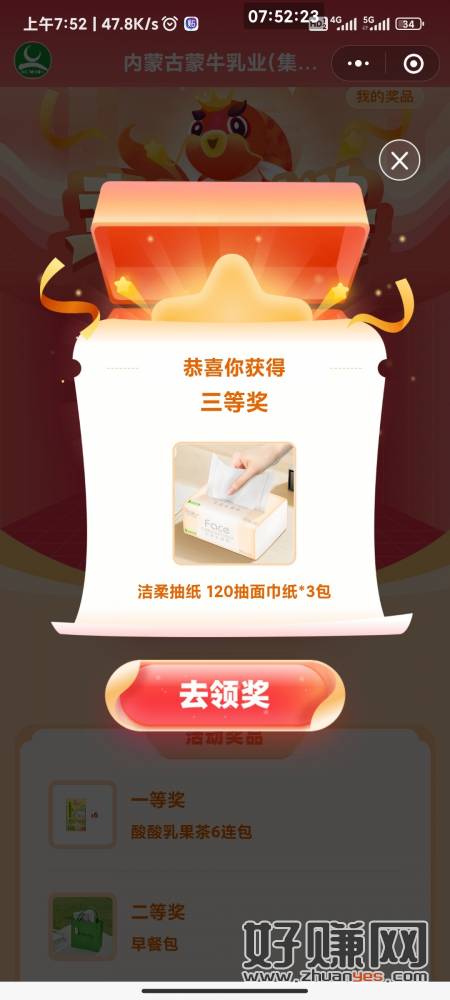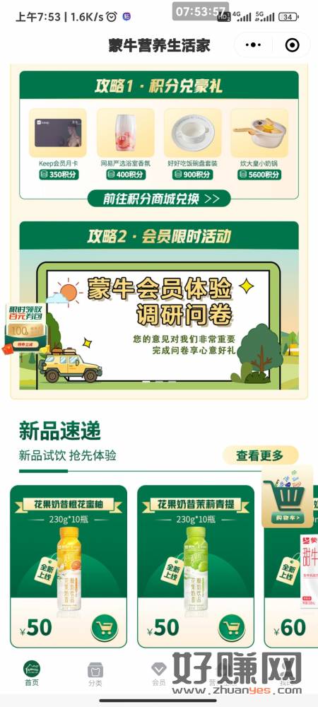 蒙牛营养生活家小程序,答问卷后+客服抽奖,现在必中实物,看得