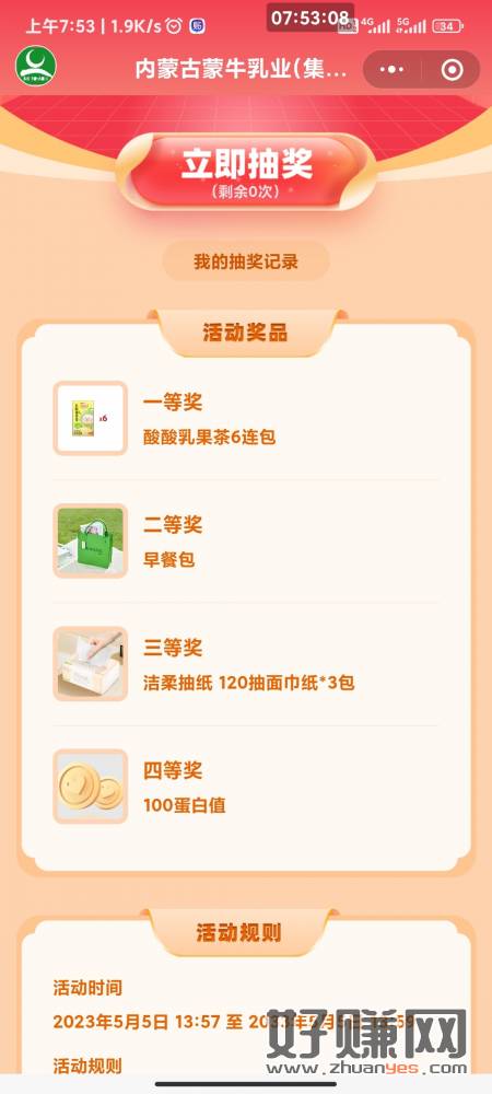 蒙牛营养生活家小程序,答问卷后+客服抽奖,现在必中实物,看得上的去。
