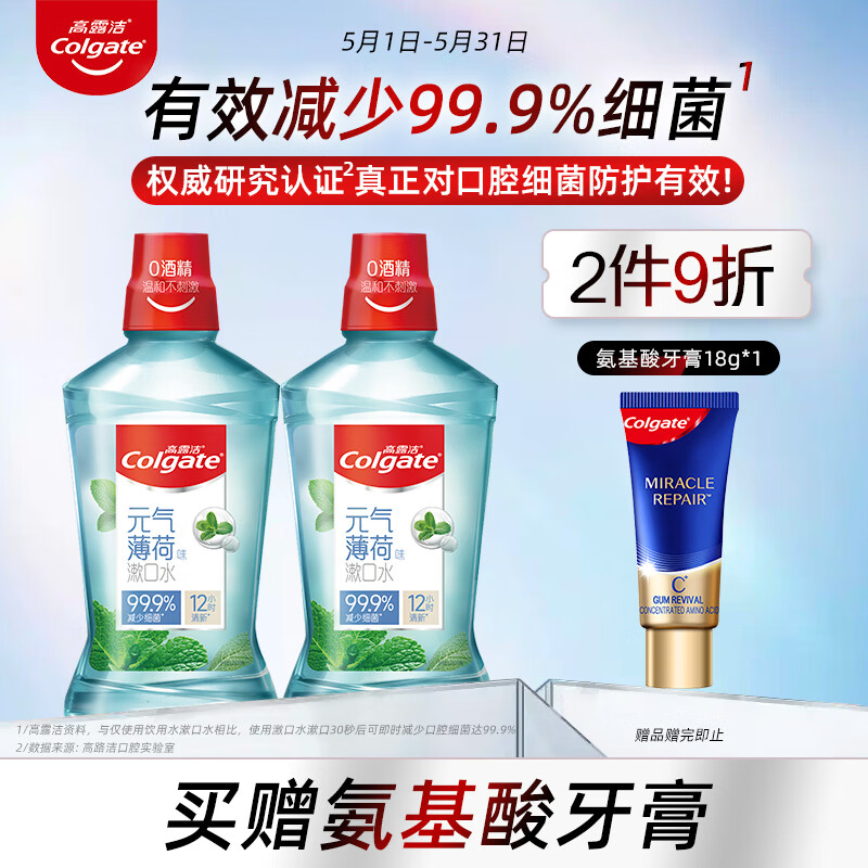 高露洁(Colgate)贝齿冰爽薄荷漱口水500ml×2