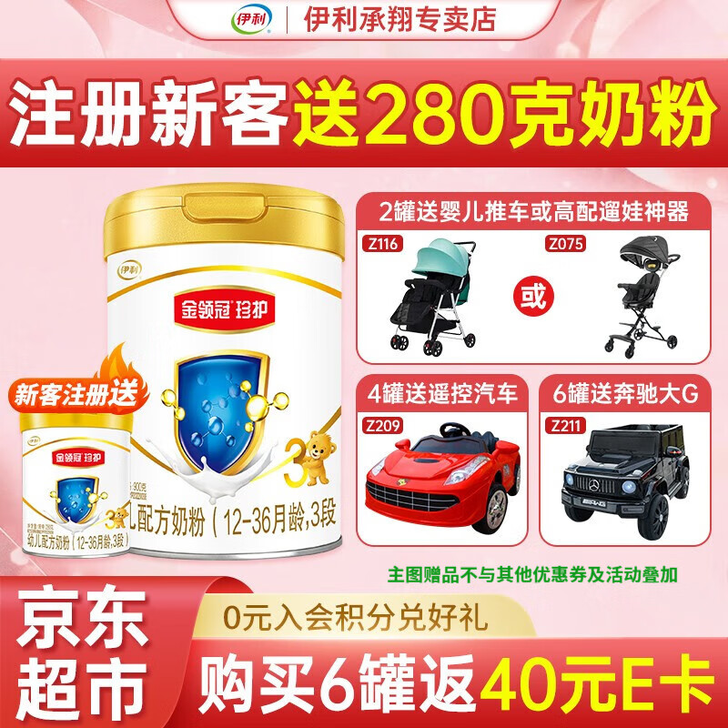 先领1500-192/399-50券,伊利 金领冠珍护3段婴幼儿配方奶粉900g*1罐