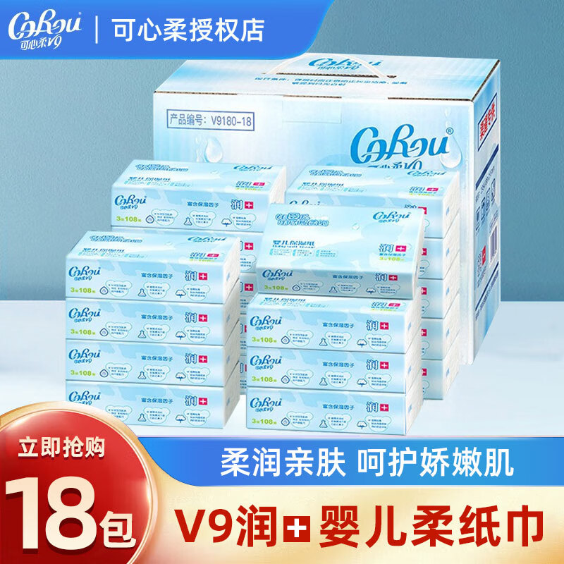 先领119-10券,可心柔(COROU)婴儿抽纸3层108抽18包