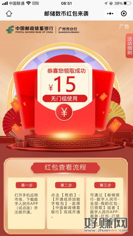 定位广东,邮政新用户,15无门槛数币