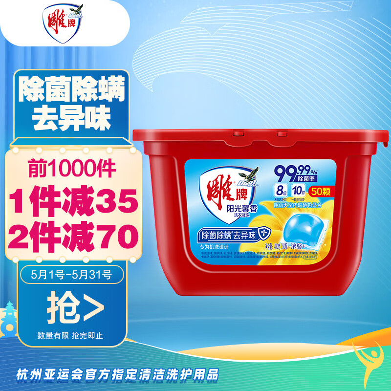 雕牌 除菌99%洗衣凝珠50颗*8g(盒装),先领100-20券