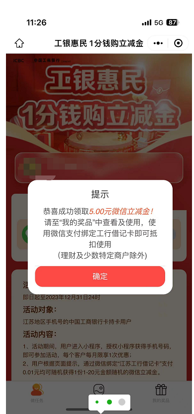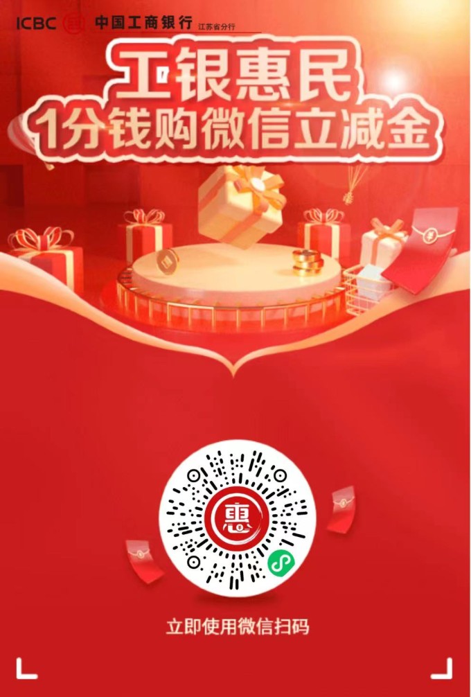 【仅限江苏】工商储蓄卡支付一分钱领取五元立减金