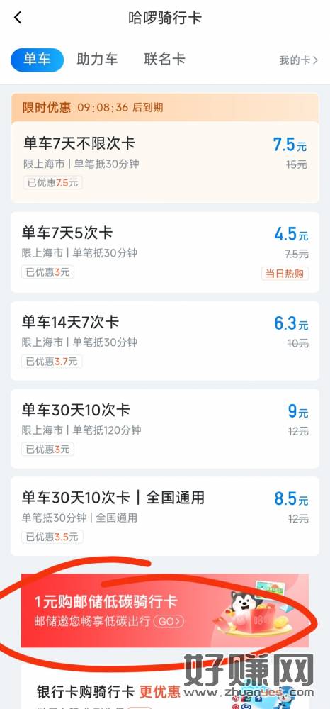 哈啰app,1r购单车月卡(可以换绑出吧)