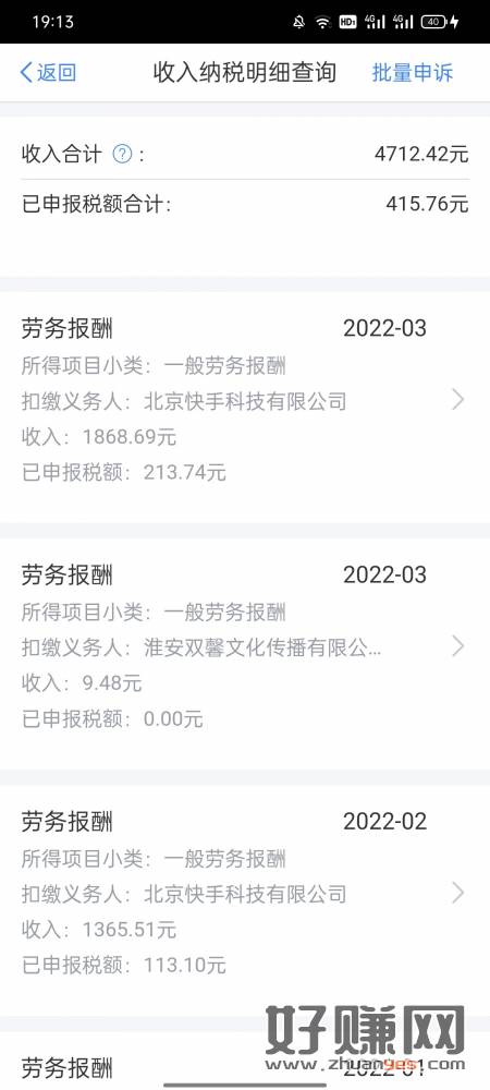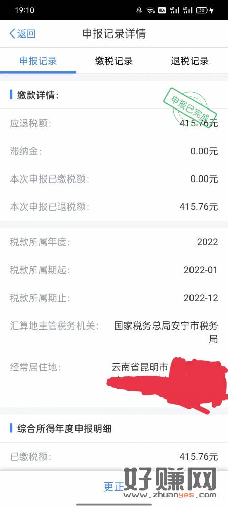 下载个人所得税APP,首页下拉常用业务,点击综合所得年度汇算,进去查询应退税额为0就退不了,我应退税额有415.76元,可以退税415.76元到银行卡,去年二月份做快手小游戏视频还有直播收入1365.51元,已申报税额113.10元,我朋友玩数藏的,已申报税额有230元,他说玩数藏来的,意外惊喜呀,可以去查查,有可能有意外惊喜,常用业务,点击收入纳税明细查询,可以查询明细,已申报税额为0,就退不了,我已申报税额合计为415.76元