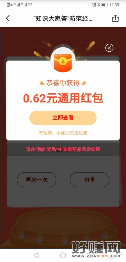 ysf 小毛 防范经济犯罪 答题有奖 中0.62通用券
