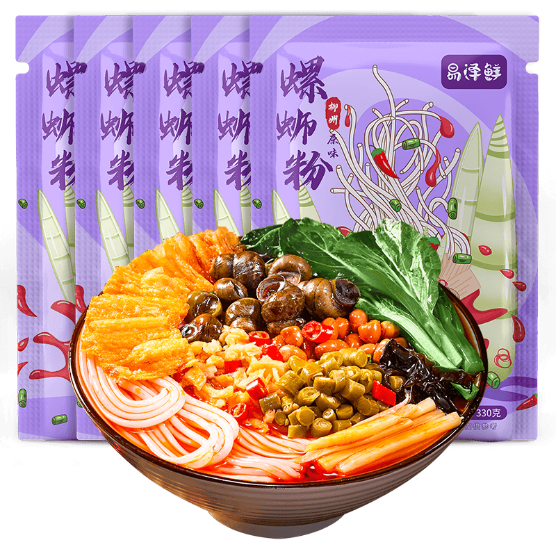 易泽鲜 加量款柳州特产螺蛳粉330g*5包(水煮型)