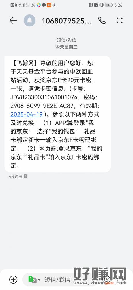 上个月天天基金中了的留意短信
