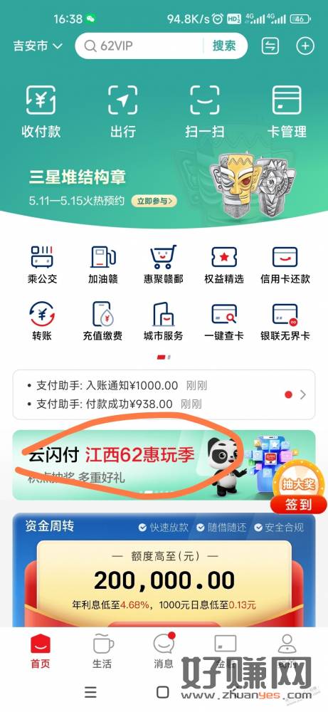 云闪付首页,每天两次,刚中62,不过我明明抽中的6.2,不知道是不是bug