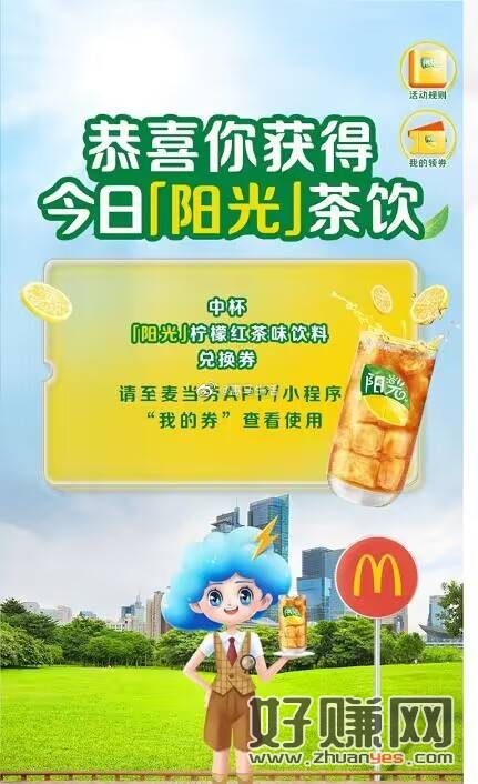 墨迹天气免费领麦当劳柠檬红茶