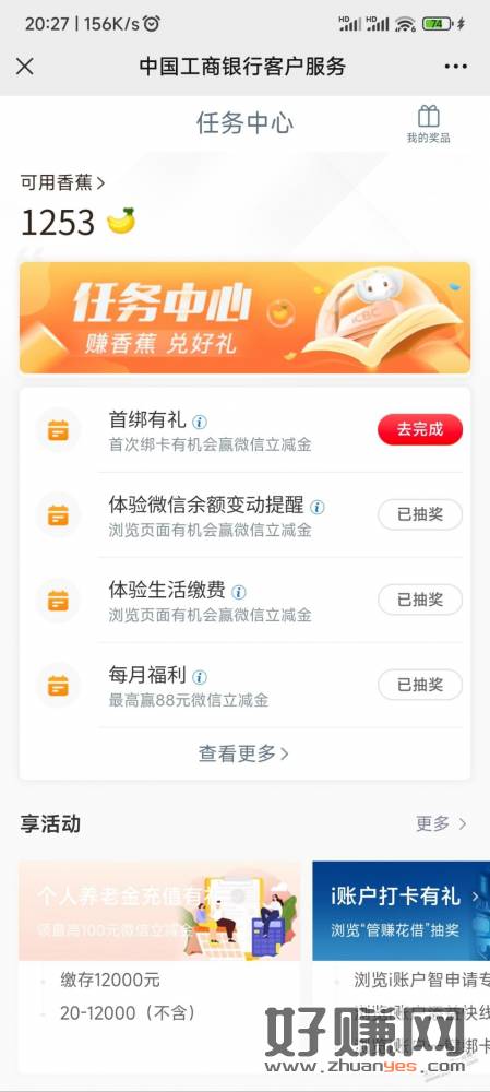 工行微信任务中心的体验微信余额变动提醒小水1.88