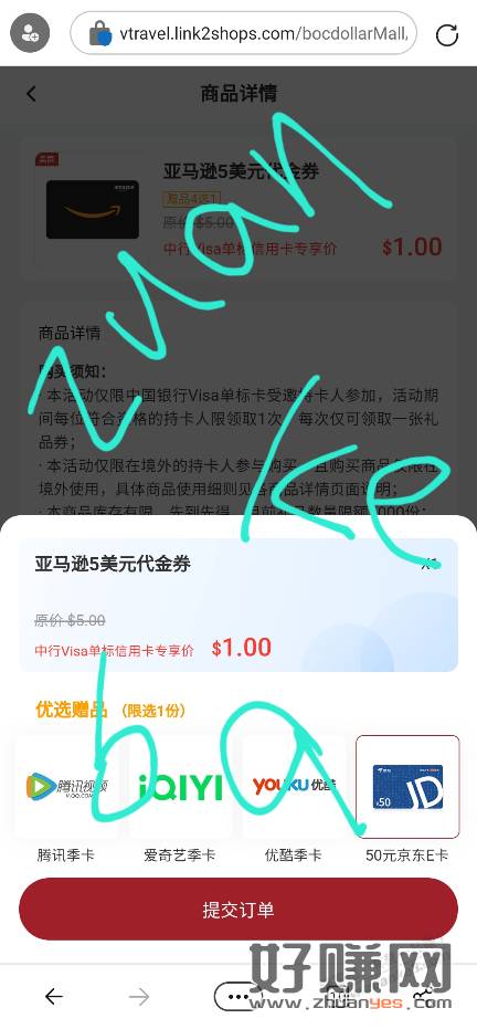 【中国银行】尊敬的客户,即日起至2023年5月26日,持您尾号0000的卡片,有机zuan会享1美元购买卡片权益礼包,包含5美元亚马ke逊电子卡和爱奇艺/腾讯/优酷季度会员等权益(任选一项),活动名额ba有限,先到先得,具体活动内zuan容可详询客服热线。活动ke仅限受邀客户参加,活动链接: