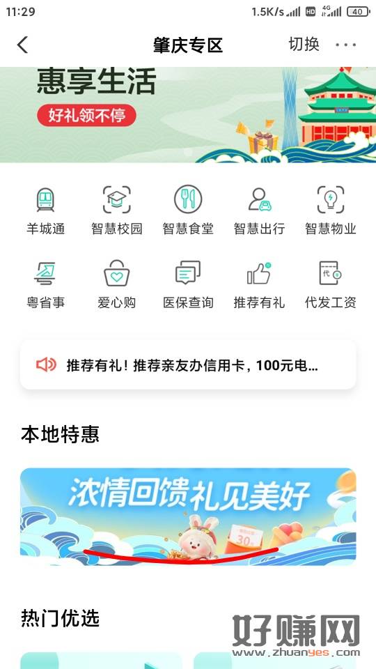 ①广东农行首页搜索“城市专区”(定位肇庆)-惠享生活-肇庆本地优惠-掌银活跃有礼,不用飞