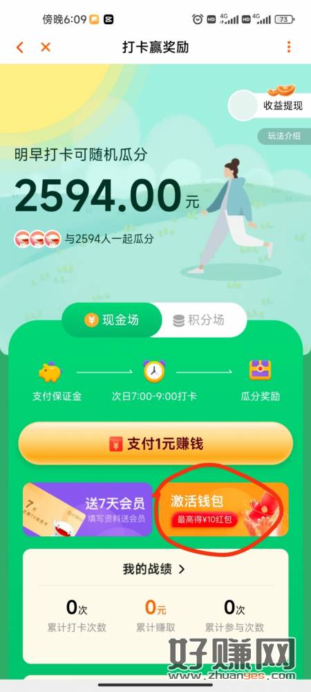 芒果TV-我的钱包-打卡赚钱-激活钱包-介意无视!