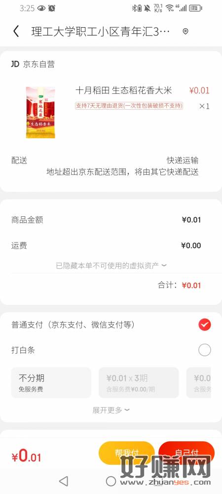 京东金融搜宠物口粮报销,上传这张图,有1元以内现金,今天亲测