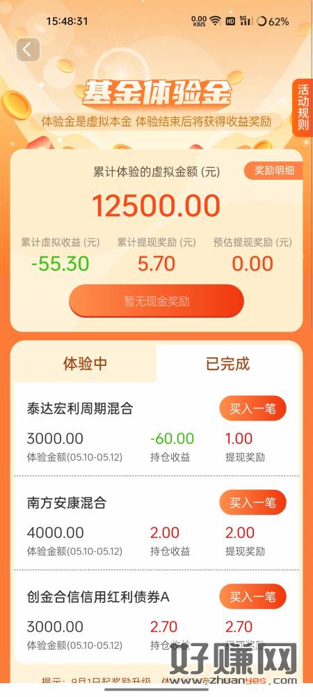 直接应用商店下载天天基金体验新人体验金大概有几块钱
