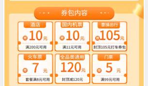 CZ0001 0.01元购-封顶257元旅行券包-含交通酒店门票曹操出行打车券