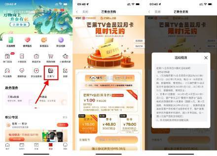 【工行每天1元抢芒果TV双月卡】每天10点整准时开抢!工行APP底部“生活”->芒果TV->10点整1元开芒果TV会员2个月,每天限量先到先得